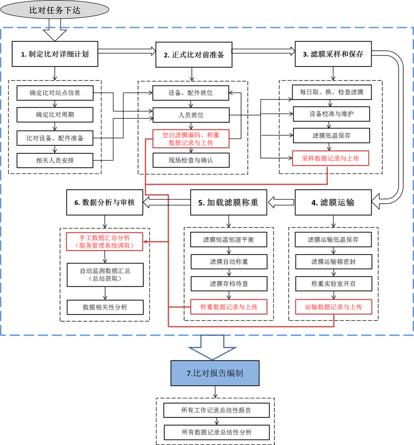 針對國控城市站PM2.5監(jiān)測儀器的比對檢查,德潤達提供一體化手工比對技術與服務解決方案,嚴格按照《環(huán)境空氣顆粒物(PM10和PM2.5)連續(xù)自動監(jiān)測系統(tǒng)安裝和驗收技術規(guī)范》(HJ 655-2013)、《環(huán)境空氣顆粒物(PM2.5)手工監(jiān)測方法(重量法)技術規(guī)范》(HJ 656-2013)、《環(huán)境空氣中PM10和PM2.5的測定 重量法》 (HJ 618-2011)和 《環(huán)境空氣質(zhì)量手工監(jiān)測技術規(guī)范》(HJ 194-2017)等相關規(guī)范的要求實施,包括濾膜采樣服務、濾膜運輸服務、濾膜稱重服務、系統(tǒng)管理服務以及比對報告編制服務。每項服務經(jīng)嚴格的比對流程,從比對任務下達,到數(shù)據(jù)匯總分析,均配有詳細的數(shù)據(jù)記錄、文件記錄和照片視頻留痕,保障比對報告的準確性、可追溯性。
