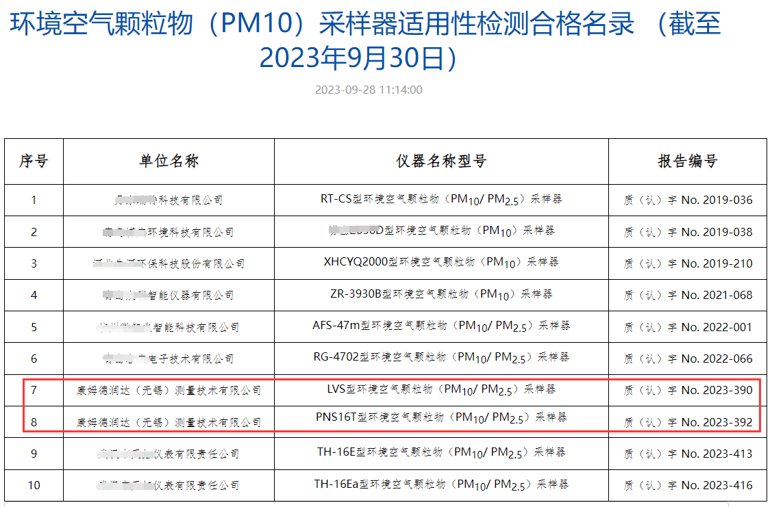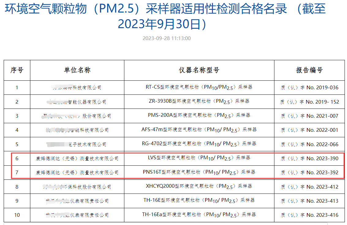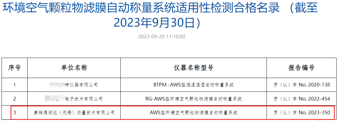 康姆德潤達的環(huán)境空氣顆粒物采樣器和環(huán)境空氣顆粒物濾膜自動稱量系統(tǒng),通過7-8個月的檢測,全部合格,入選新一批中國環(huán)境監(jiān)測總站的適用性檢測合格名錄中。