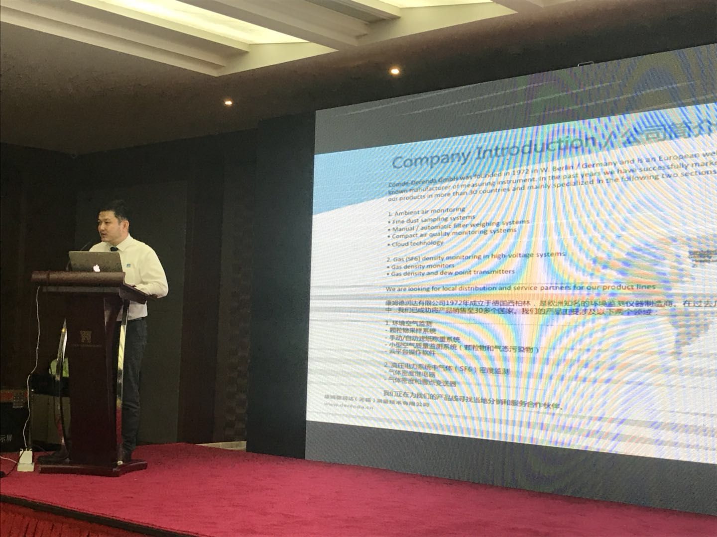 此次“德國勃蘭登堡州投資合作推介會&中德企業(yè)對接洽談會”意義重大,不僅是構(gòu)建中德商務(wù)溝通平臺,同時也為中德企業(yè)雙方尋找和開拓長期合作伙伴,共同探討可合作項目。在9月10日北京場會議中,中國國際商會雙邊合作部吳蒙部長,勃蘭登堡州經(jīng)濟(jì)發(fā)展局總經(jīng)理邵倜安等中德雙方代表,均出席會議并發(fā)表致辭。德潤達(dá)公司代表在北京場B2B對接洽談會中,也與政府及多家企業(yè)代表就技術(shù)、商機(jī)、貿(mào)易等方面進(jìn)行交流和合作探討,收獲頗豐。在9月12日的河北場會議中,河北省副省長夏延軍,德國勃蘭登堡州州長迪特馬·沃伊德克博士均出席了會議并發(fā)表致辭。在綠色技術(shù)推介交流會中,德潤達(dá)中國總經(jīng)理鄧楠先生針對環(huán)境監(jiān)測產(chǎn)品線,以”創(chuàng)新的大氣污染監(jiān)測以及智能質(zhì)控技術(shù)”為主題發(fā)表演講,向廣大參會者展示了德潤達(dá)基于物聯(lián)網(wǎng)和云計算,從濾膜采樣、運(yùn)輸、稱重、計算到數(shù)據(jù)比對及決策支持的環(huán)境空氣質(zhì)量自動監(jiān)測系統(tǒng),得到廣泛好評。