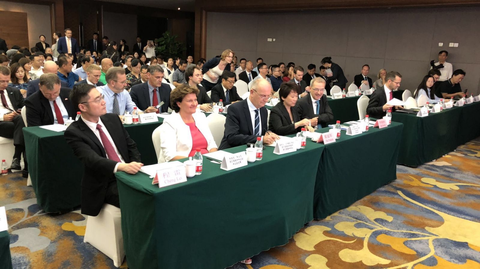 論壇活動現(xiàn)場(前排左三為勃蘭登堡州州長迪特馬·沃伊德克博士,左四為河北省副省長夏延軍)