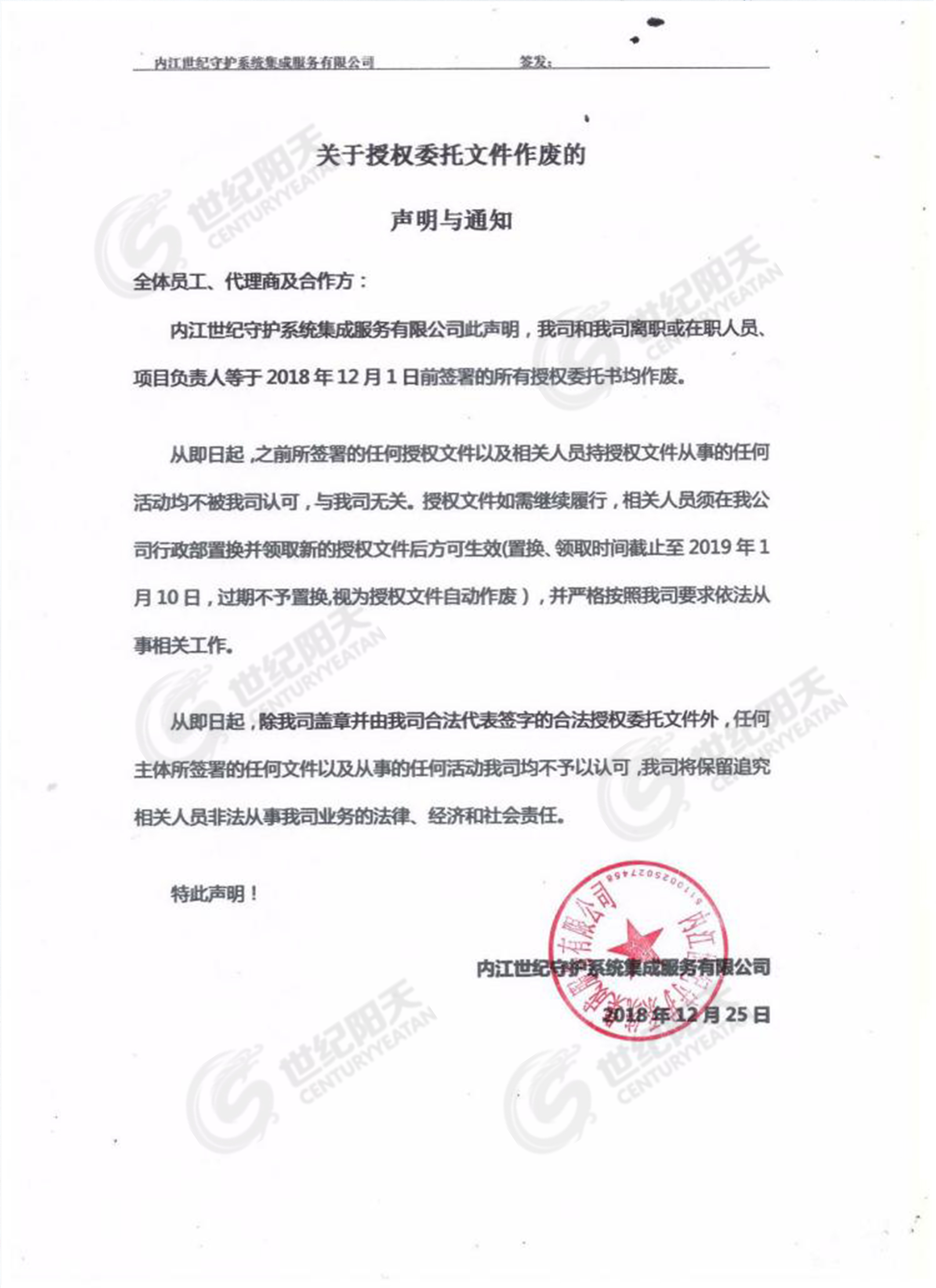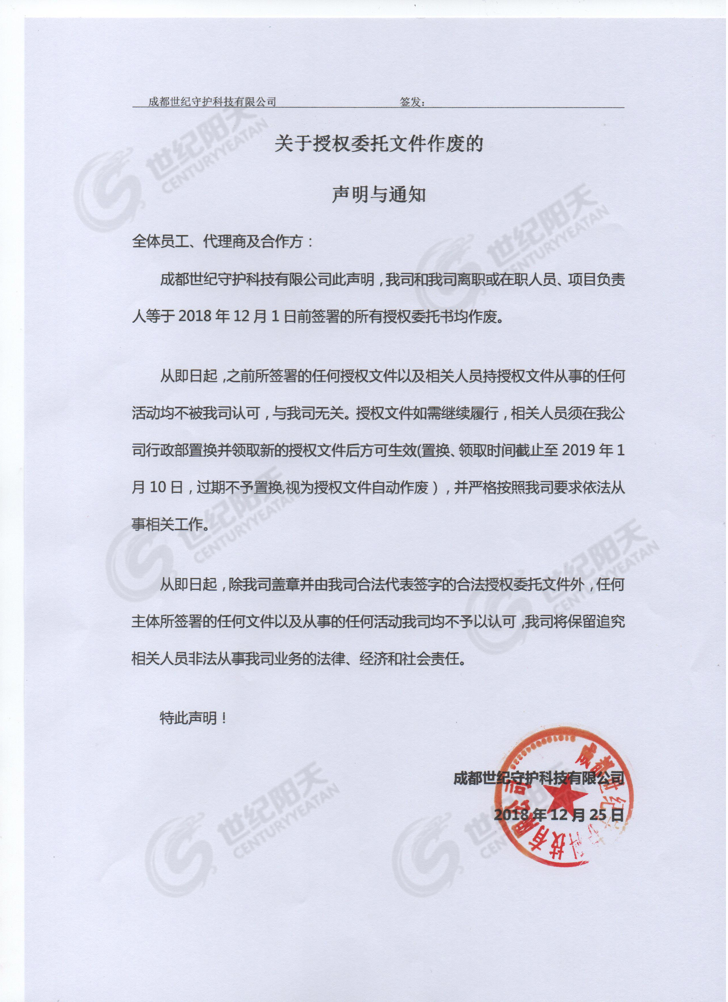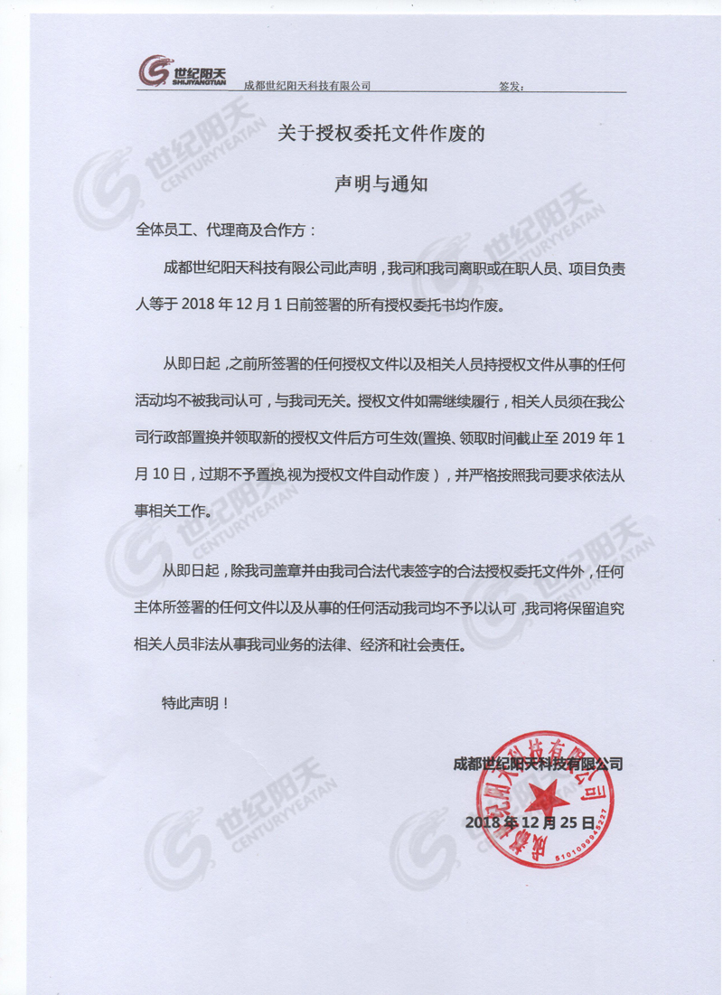 2018.12.25 [實時公告] 發(fā)布者:世紀陽天 瀏覽次數(shù):1381