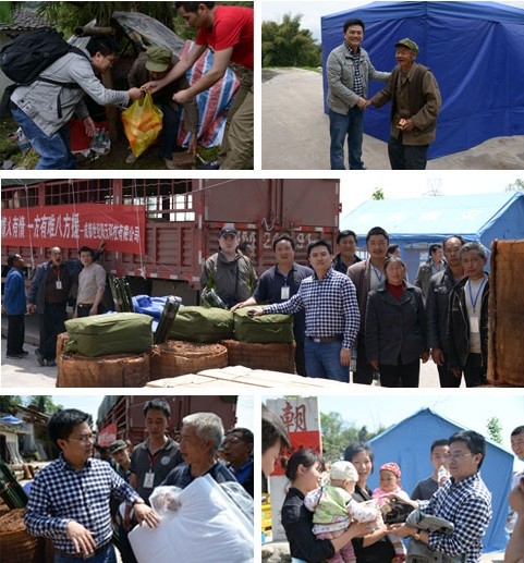 4月24日肖開強(qiáng)一行抵達(dá)了天全縣受災(zāi)嚴(yán)重的老場鄉(xiāng)、新華鄉(xiāng)??偨?jīng)理肖開強(qiáng)同志認(rèn)真聽取了鄉(xiāng)長、村長對當(dāng)?shù)厥転?zāi)情況的介紹,仔細(xì)詢問兩個鄉(xiāng)的受災(zāi)情況,走訪受災(zāi)群眾,按老弱病殘優(yōu)先原則為受災(zāi)群眾發(fā)放了賬蓬、防潮墊、棕墊、毛毯、幼兒奶粉、米粉、女性用品等,并帶領(lǐng)青年團(tuán)員志愿者與村民一起為受災(zāi)群眾搭建賬蓬,搬運(yùn)物資。