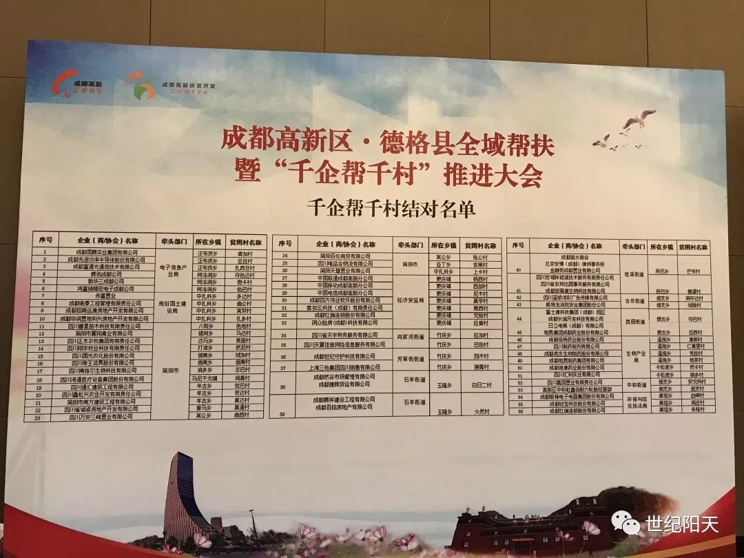 導(dǎo)語:12月7日上午9點(diǎn),成都市高新區(qū)“對口幫扶德格縣全域幫扶暨千企幫千村”精準(zhǔn)扶貧行動推進(jìn)大會在通威國際中心召開。省、市、區(qū)有關(guān)領(lǐng)導(dǎo)共同出席了本次大會。成都世紀(jì)陽天旗下互聯(lián)網(wǎng)教育品牌世紀(jì)守護(hù)CEO唐紅林先生代表公司參加并聽取了會議的主要內(nèi)容。