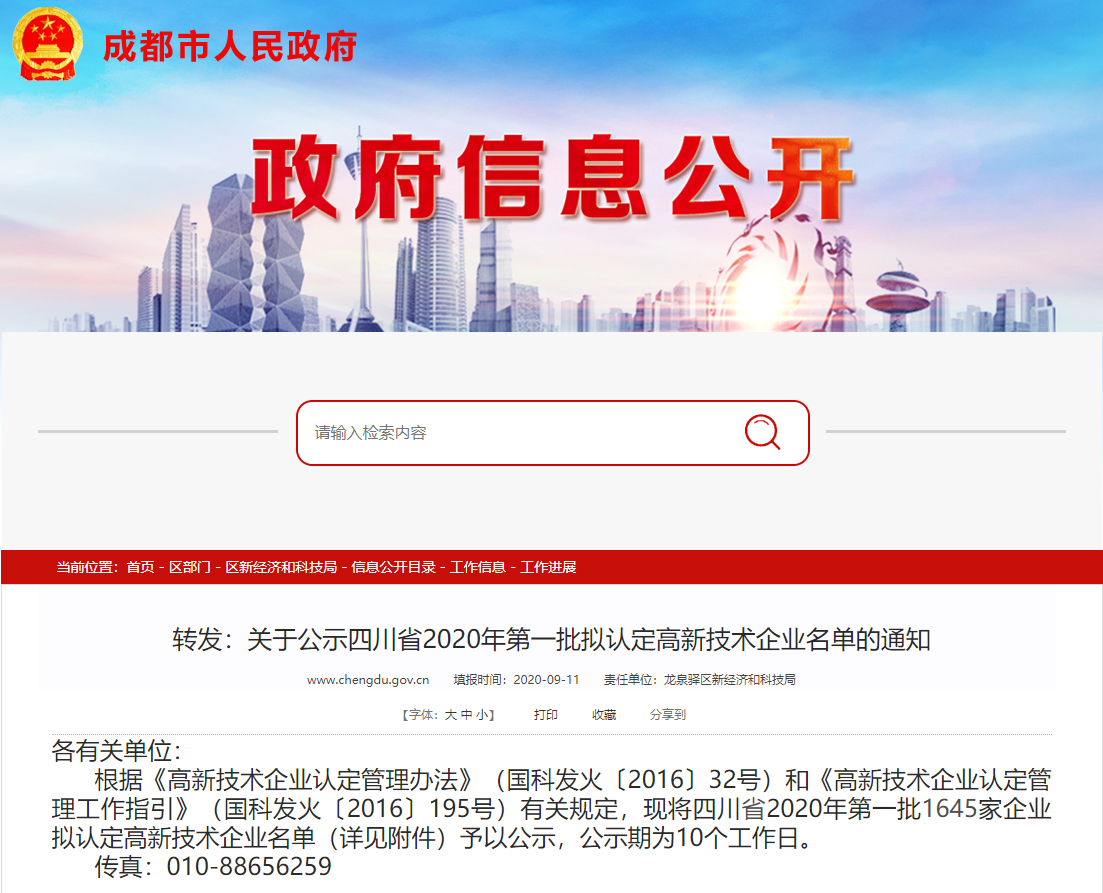 導(dǎo)語(yǔ):根據(jù)《高新技術(shù)企業(yè)認(rèn)定管理辦法》(國(guó)科發(fā)火〔2016〕32號(hào))和《高新技術(shù)企業(yè)認(rèn)定管理工作指引》(國(guó)科發(fā)火〔2016〕195號(hào))有關(guān)規(guī)定,四川省2020年第一批擬認(rèn)定高新技術(shù)企業(yè)名單予以公示。成都世紀(jì)陽(yáng)天科技有限公司名列其中,目前已順利通過(guò)公示階段。由此公司已連續(xù)2次獲此殊榮,再次邁入高新技術(shù)企業(yè)行列。